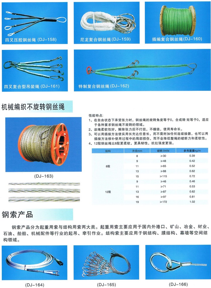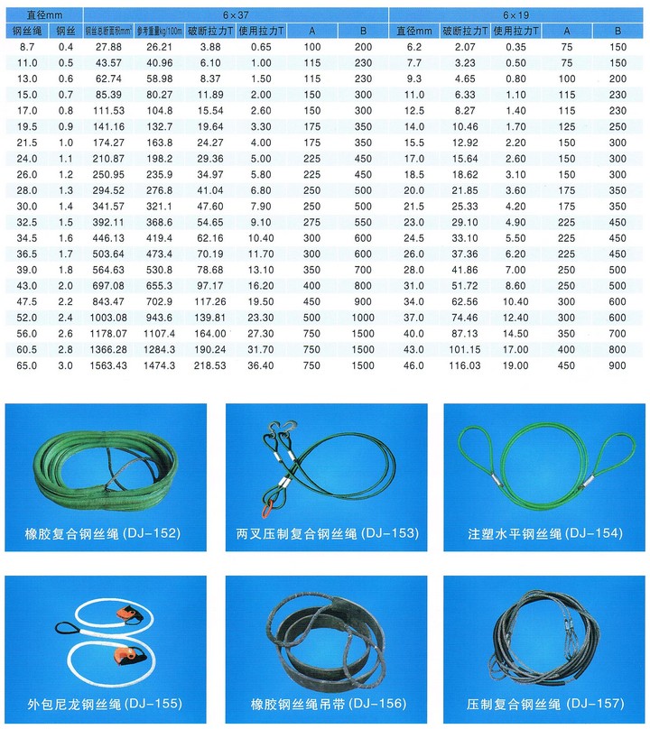 常用復合鋼絲吊裝繩技術參數